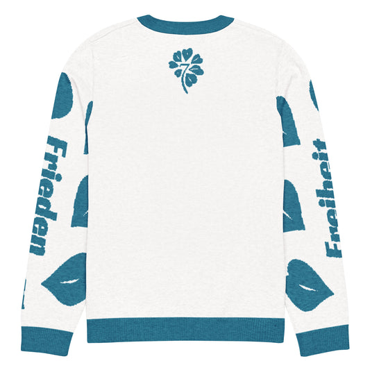 Glückspulli 7 – Weißer Pullover mit Felix dem Faultier | Frieden & Freiheit