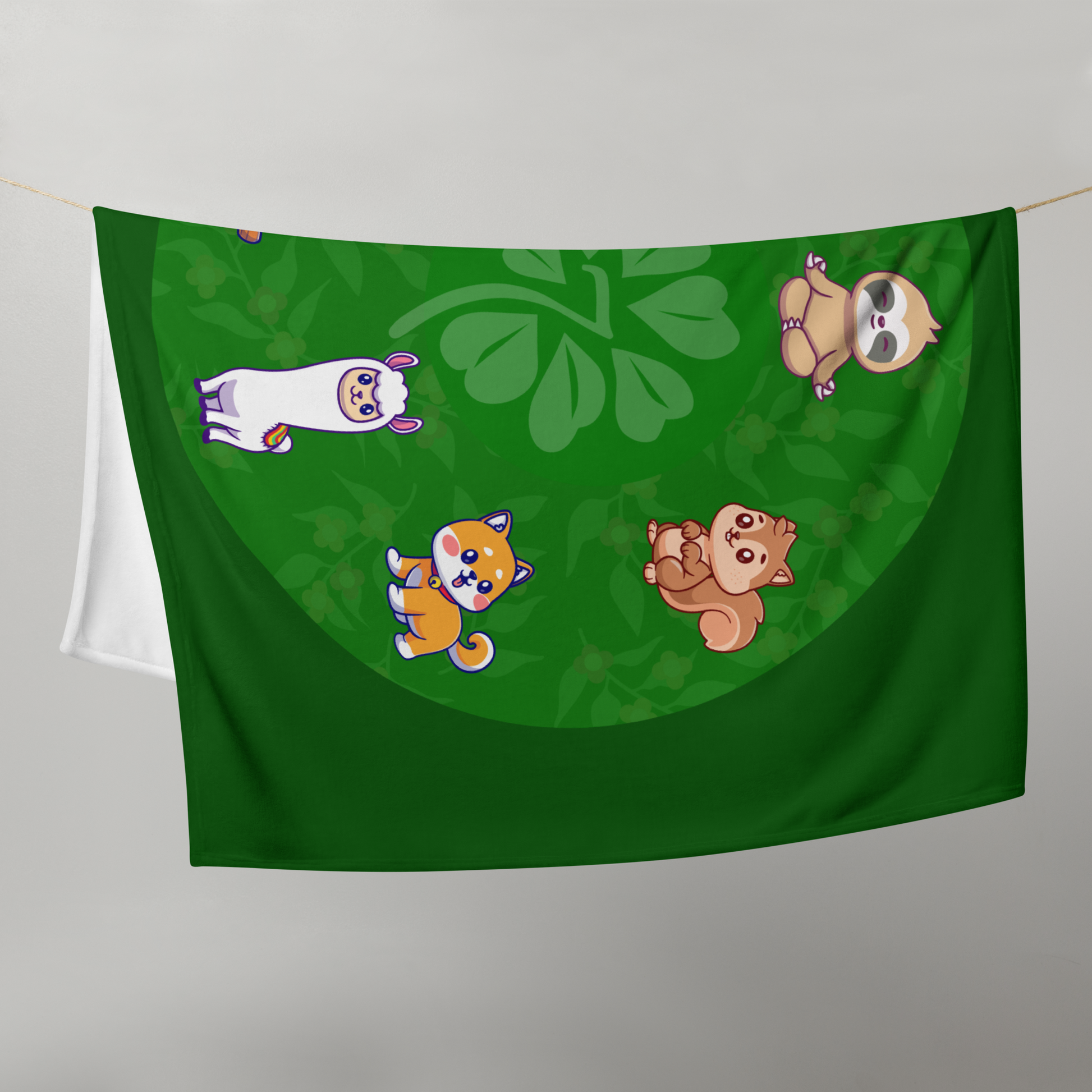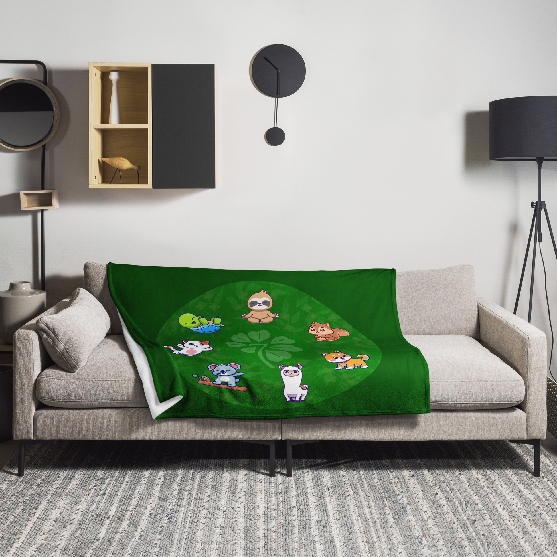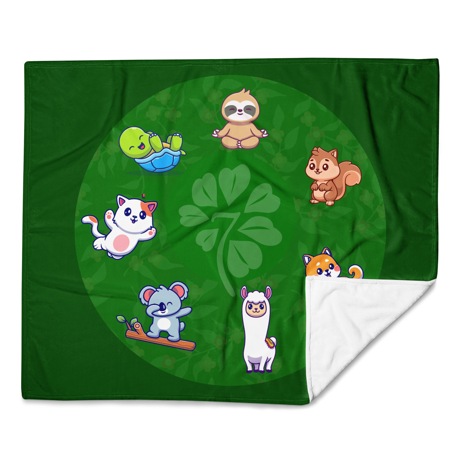 Grüne Decke mit allen 7 Glückstieren | Dein persönliches Glück